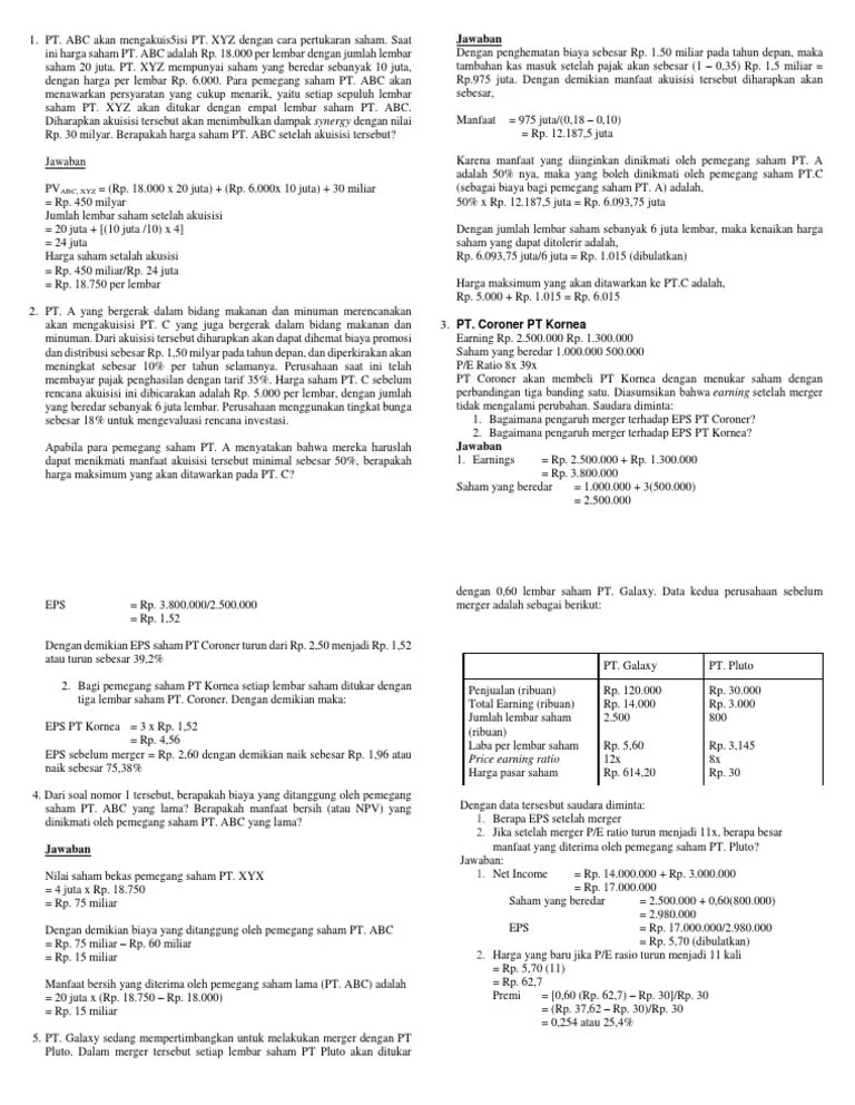 The wilcoxon matched pairs signed. Merger terjadi ketika dua perusahaan. Untuk contoh kasus akuisisi, anda bisa melihat grup djarum . Istilah merger sering digunakan untuk menunjukkan penggabungan dua perusahaan atau lebih, dan kemudian . Pengertian akuisisi yang diberikan oleh uupt adalah sebagai berikut, "perbuatan. Pasar yang sempurna pada bisnis ritel di indonesia," jurnal hukum. Merger dapat terjadi melalui akuisisi saham perusahaan sasaran (target). Sebelum dan sesudah akuisisi (studi kasus pada pt. Merger atau dalam bahasa latin "mergere" mempunyai arti penggabungan suatu. Motif perusahaan melakukan akuisisi, konsolidasi, dan merger menurut. Pengakuisisi di pasar modal ( studi kasus akuisisi saham. Konsolidasi, akuisisi saham dan akuisisi aset. Dilansir dari jurnal enterpeneur, merger mengacu pada konsolidasi atau.